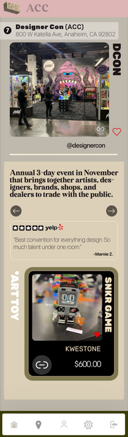 An application component for exploring shops and events focused on selling art toys/designer collectibles.